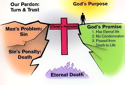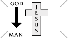This diagram illustrates that God has bridged the gulf which separates us from Him by sending His Son, Jesus Christ, to die on the cross in our place to pay the penalty for our sins.